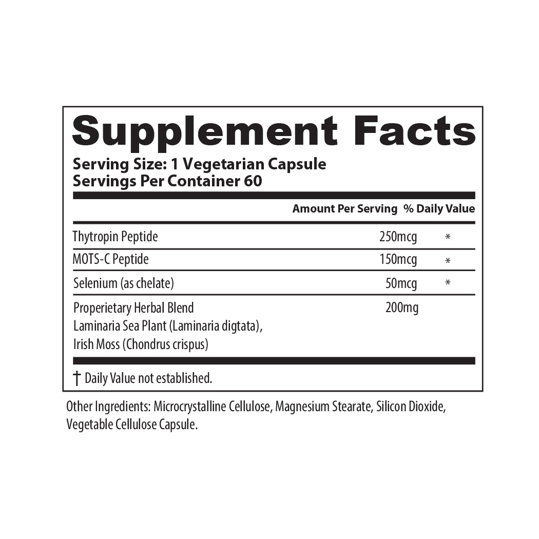 Thyroid Plus is a targeted thyroid-support formula designed to help optimize metabolism, energy, and overall hormonal balance. Featuring a Thyroid Peptide Formula that includes Thytropin (MOTS-C), this supplement may help enhance metabolic processes and support healthy thyroid gland function. Perfect for individuals seeking improved vitality, better metabolic performance, and more balanced day-to-day energy, Thyroid Plus provides advanced support for a well-functioning thyroid system.